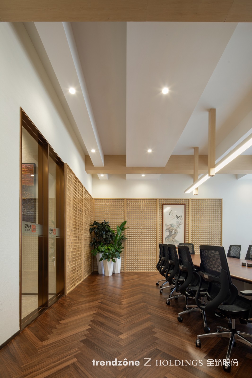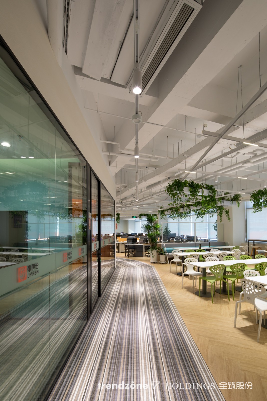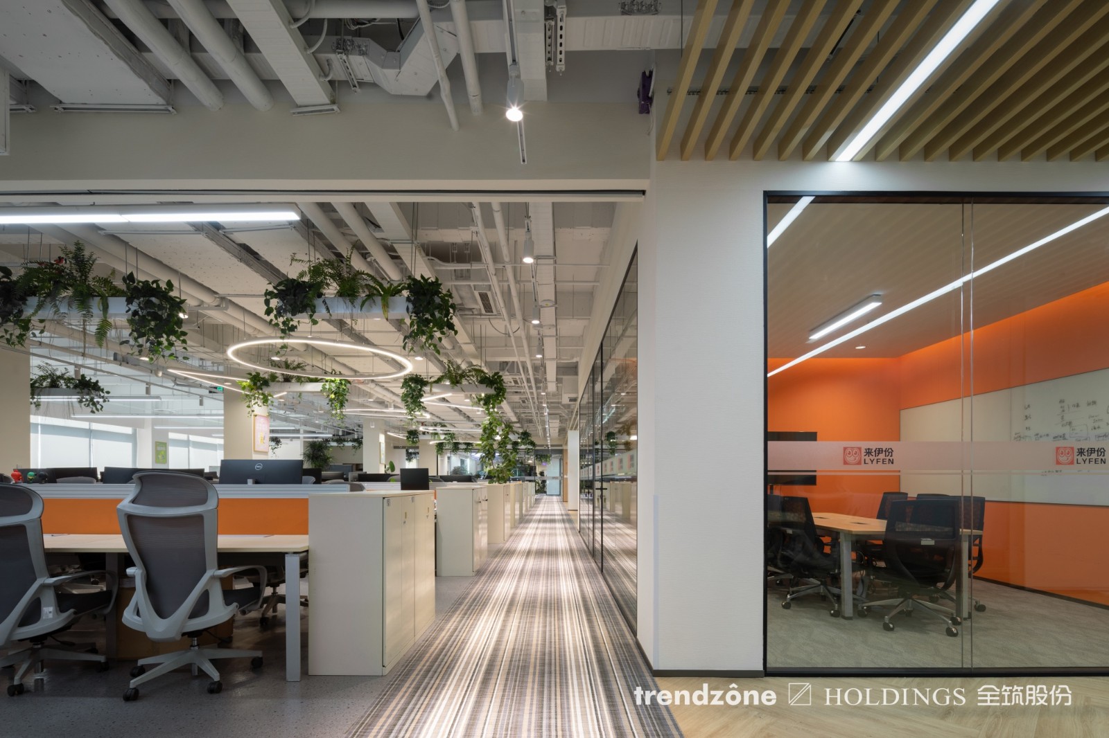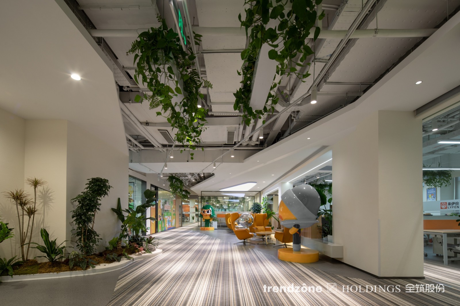 With the core philosophy of "people-oriented, win-win cooperation, and flexibility", ZOOMCHASE has created a "Urban Nature Paradise" covering a total area of 6,260 square meters for LYFEN. Based on vertical greenery, recyclable eco-friendly materials, energy-efficient lighting systems, and modular furniture, the design brings out the relaxed ambiance of a forest-style space.From a long-term perspective, the space functions are thoughtfully planned, including a reception hall, social hub, conference and training center, operation center, president’s office, corporate club, and 8 standard office